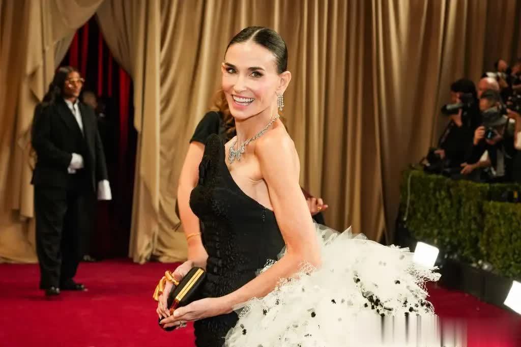 在2026年演员工会奖的红毯上,曾经的《人鬼情未了》女主角,已经63岁的好莱坞女星黛米·摩尔穿着一件夏帕瑞丽的高定长裙缓缓走来。
